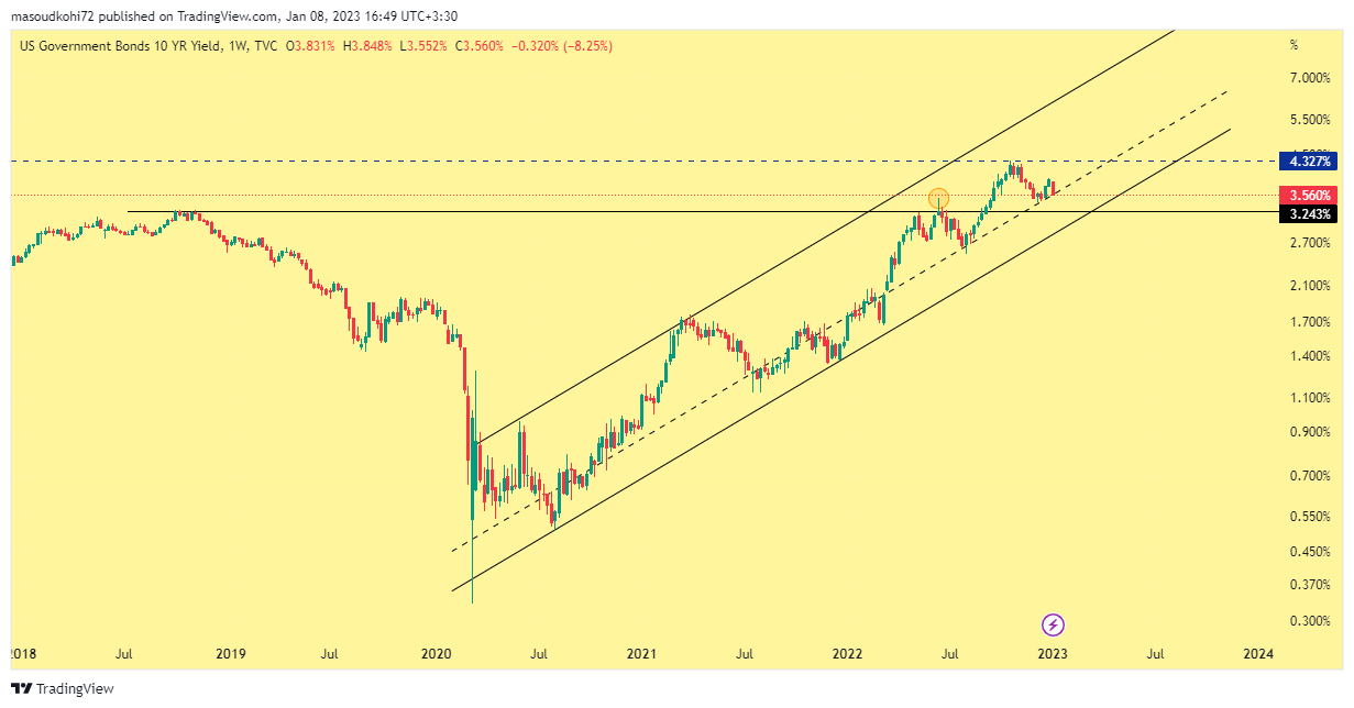 همانطور که در چارت و نمودار شاخص اوراق قرضه ده ساله مشاهده میکنید این شاخص در روند صعودی بلند مدت خود قرار دارد. اوراق قرضه هفته گذشته ریزشهای قابل توجهی را به دنبال ریزش شاخص دلار تجربه کرد. در صورتی که این شاخص تا محدوده خط روند صعودی بتواند نزول را تجربه کند میتوان انتظار یک رالی صعودی در بیت کوین تا محدوده ۱۸۳۰۰ را داشت و در صورتی که این نزول رخ ندهد باید همچنان دنبال پوزیشنهای شورت در ارزهای دیجیتال باشیم!
