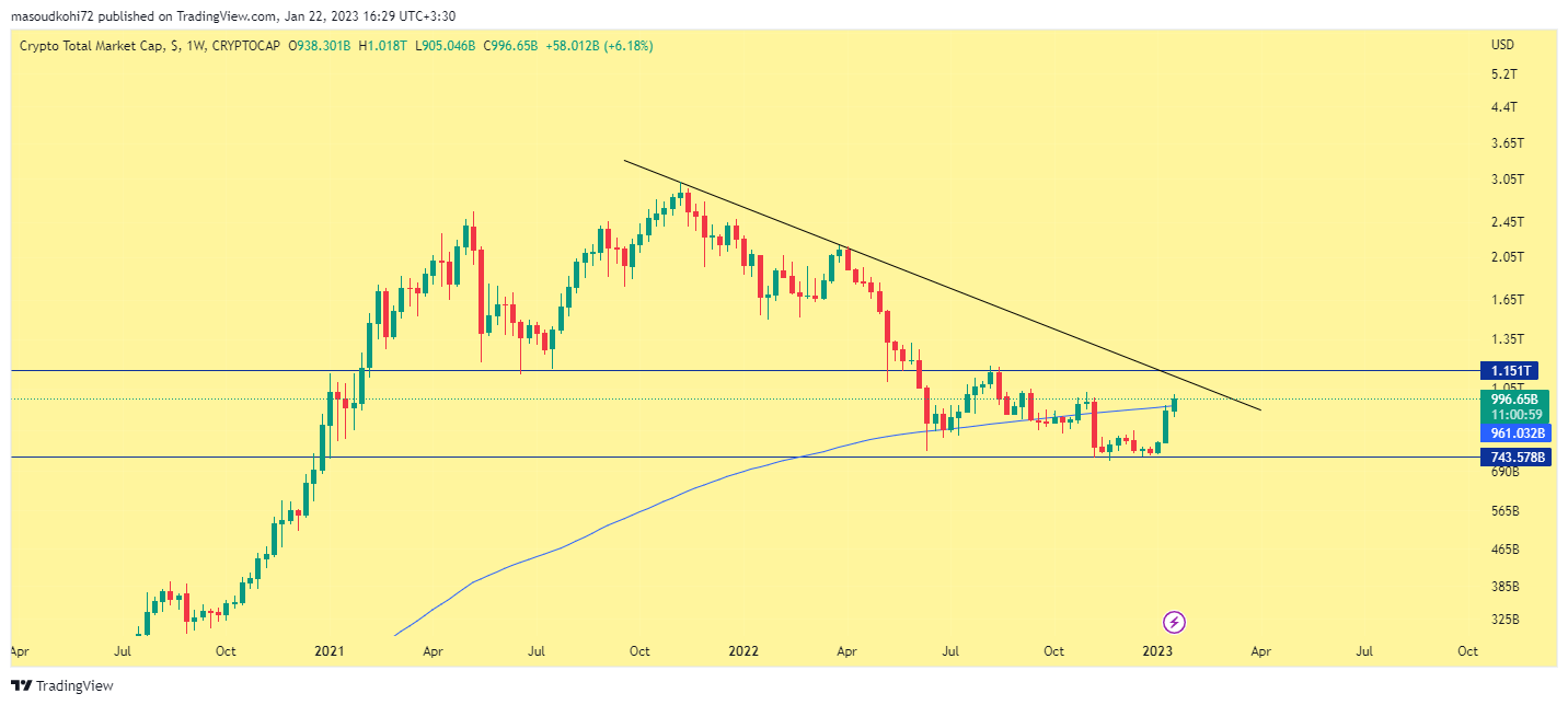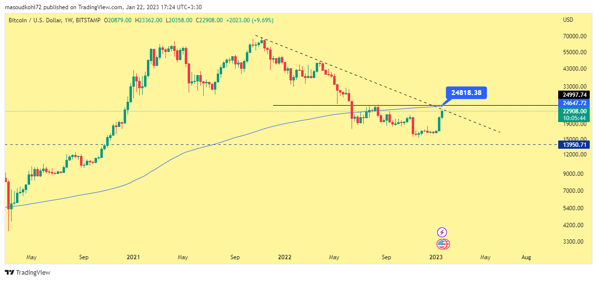 هنوز یک ماه از سال 2023 نگذشته است که این سال شروع خود را برای بازارهای ریسکی از جمله ارزهای دیجیتال و سهام طوفانی آغاز کرده است. به گونه ای که بیت کوین از کف قیمتی خود یعنی 15400حدود 50 درصد رشد قیمتی داشته است. و اگر این رشد قیمتی را بخواهیم به تومان نیز حساب کنیم. با توجه به افزایش قیمت دلار در ایران، بیت کوین به تومان؛ حدود 70 درصد رشد را تجربه کرده است. در حال حاضر قیمت بیت کوین در صرافی های ایرانی از جمله اتراکس بالای یک میلیارد تومان خرید و فروش میشود.