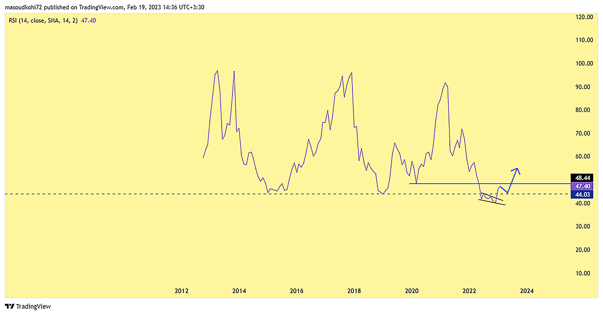 بررسی اندیکاتور rsi در تایم ماهانه