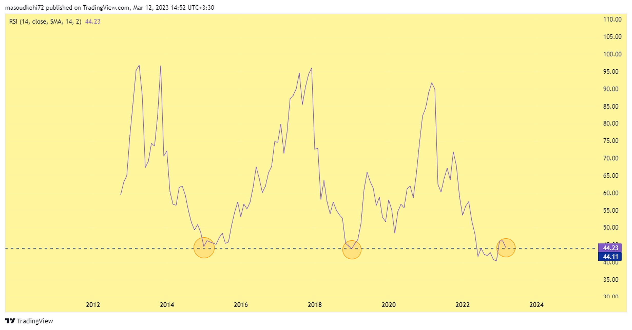 بررسی اندیکاتور RSI در تایم فریم ماهانه