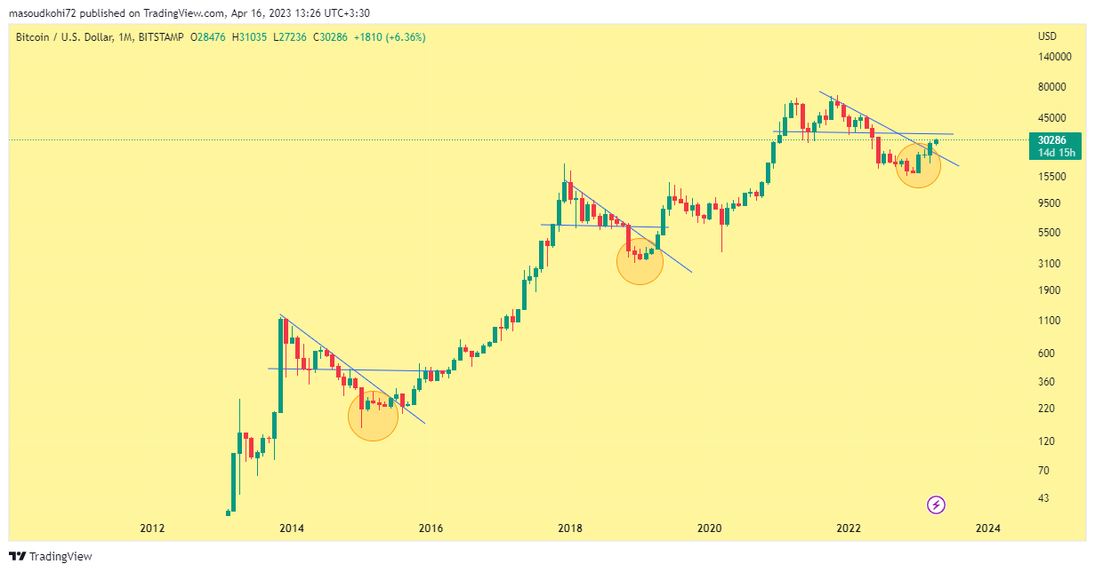 جواب این سوال تا حدودی در چارت مشخص شده است! بیت کوین یک بار دیگر تاریخ خود را مانند سال های 2019 و 2015 تکرار کرده است. و با کندل قدرتمند ماهانه از روند نزولی بلند مدت خود خارج شده است. تا زمانی که بیت کوین بالای قیمت 23800 معامله شود تارگت ده هزار دلاری برای این ارزدیجیتال وجود نخواهد داشت. به شرطی که مقاومت 31 هزار را پر قدرت رد کند تارگت 40 هزار دلار برای بیت کوین منطقیتر خواهد بود.