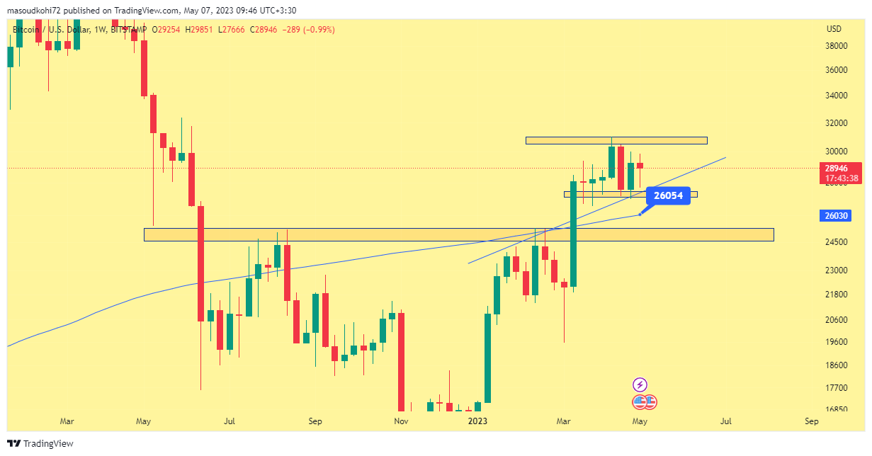 بیش از 50 روز است که بازار خرید و فروش بیتکوین در ناحیههای 27 هزار و 30 هزار دلار شروع شده است و تاکنون هیچکدام موفق به شکست این ناحیه حمایتی و مقاومتی نشدهاند. شرایط برای اقتصاد جهانی روزبهروز آشفته و بحرانیتر میشود و در این بین بیتکوین که برای اولین بار در تاریخ خود با چنین بحرانی مواجه شده است در سردرگمی برای صعود یا نزول به سر میبرد. پس در تحلیل هفتگی شماره 19 از وبلاگ صرافی اتراکس همراه ما باشید تا با تکیه بر تحلیل تکنیکال و تحلیل بنیادی آینده بازار را باهم بررسی کنیم.