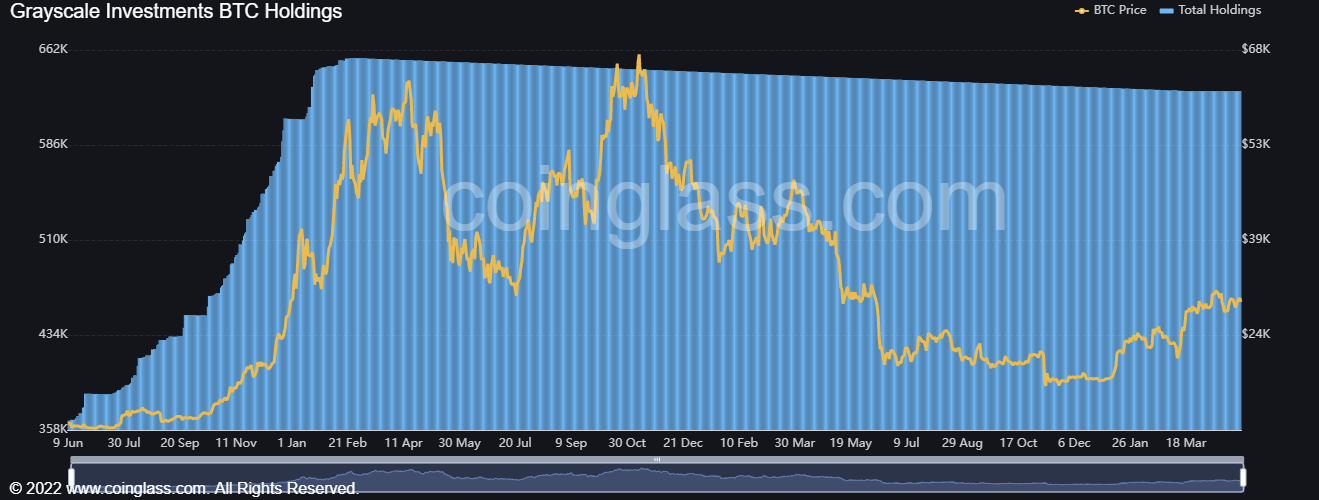 تصویر زیر هم نمودار هولدرهای بیتکوین در صندوق سرمایهگذاری گری اسکیل است. این نمودار در 2 سال گذشته روندی ریزشی را طی کرده بود. اکنون در حال کفسازی است و اگر این کفسازی معتبر واقع شود شرایط برای صعود بازار ارزهای دیجیتال مهیا خواهد شد.
