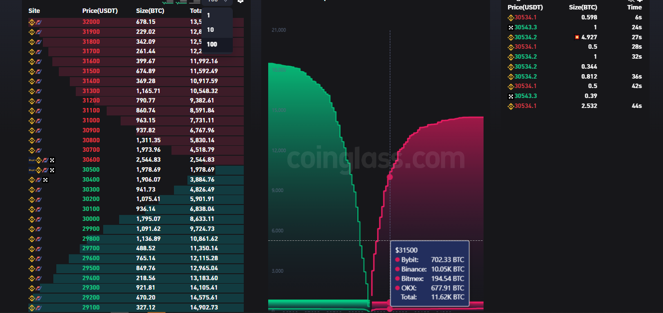 اوردر بوکها نیز تقریبا در حالت تعادل قرار دارند و دیوارههای خرید و فروش را در منطقههای 29,700 و 31,600 نشان میدهند. از آنجا که قیمت در هفته گذشته به زیر 30 هزار دلار کاهش یافت، بهنظر می رسد هدف بعدی معاملهگران ناحیه 31,600 باشد. و بعد از رسیدن به این ناحیه تصمیم به ادامه روند صعودی یا برعکس بگیرند.