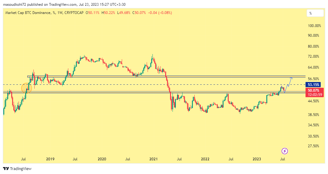 تا زمانی که دامیننس بیت کوین بالای 49 درصد است شرایط برای آلت کوینها مطلوب نخواهد بود.