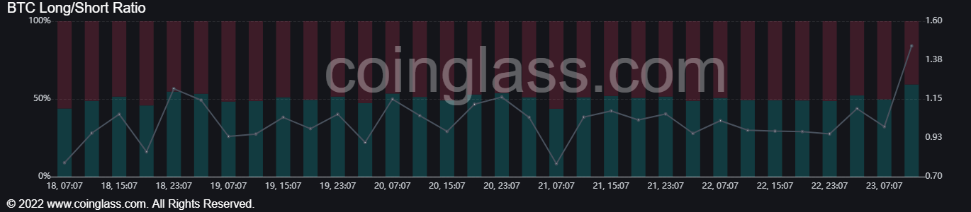 در هفته گذشته زمانی که این شاخص را بررسی میکردیم قدرت فروشندهها از خریداران بیشتر بود. همین مساله باعث شد بیت کوین از 31 هزار دلار تا 29500 ریزش کند. در این هفته معاملهگران تغییر جهت دادهاند و بیشتر در پوزیشنهای لانگ قرار گرفتهاند، و حتی در تایمهای 4 ساعته و 1 ساعته 59 درصد معاملهگران در موقعیتهای خرید قرار دارند. همین مساله باعث میشود در اوایل هفته ما شاهد یک بازار سبز و صعودی باشیم، و قیمت بیت کوین دوباره به سمت مقاومت 32 هزار دلار خود حرکت کند.