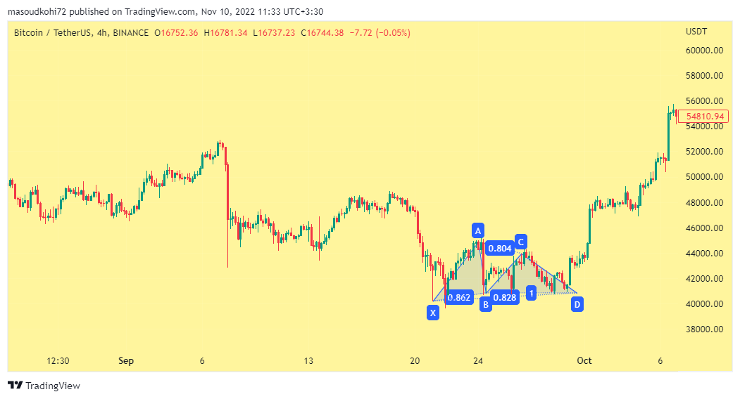 پایه سوم باید 161.8 درصد به عقب برگردد که یک الگوی ساده ABCD است.