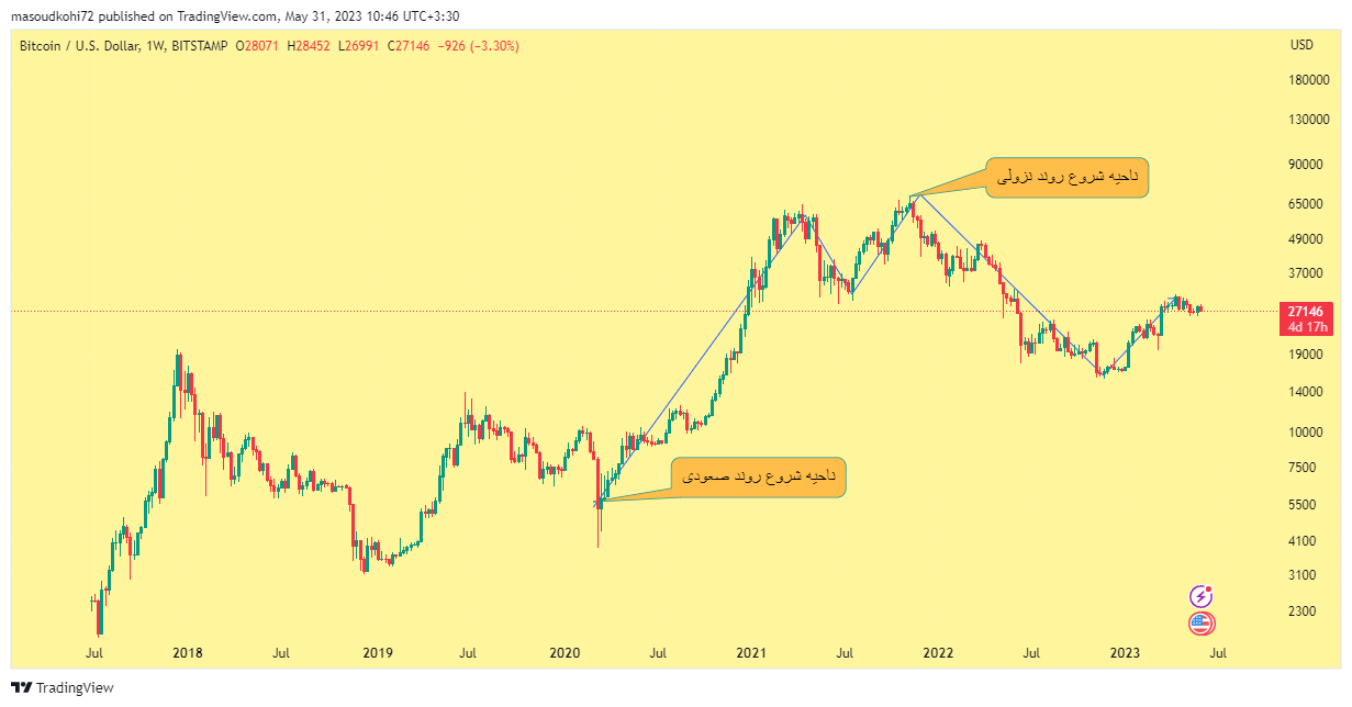 شناسایی روند در بازارهای مالی بهخصوص بازار ارزهای دیجیتال برابر است با برگه برنده شما در این زمینه. بسیار مهم است زمانی که یک روند صعودی آغاز میشود از همان ابتدا سرمایهگذاری خود را شروع کرده باشیم تا نهایت سود را از بازار دریافت کنیم و یا برعکس زمانی که یک روند نزولی اغاز میشود بسیار مهم است که از همان ابتدا دارایی خود را از بازار خارج کنیم. پس تا انتهای این مقاله آموزشی از بلاگ صرافی ارز دیجیتال اتراکس با ما همراه باشید تا باهم نحوه شناسایی روند در بازار ارزهای دیجیتال را یاد بگیریم.