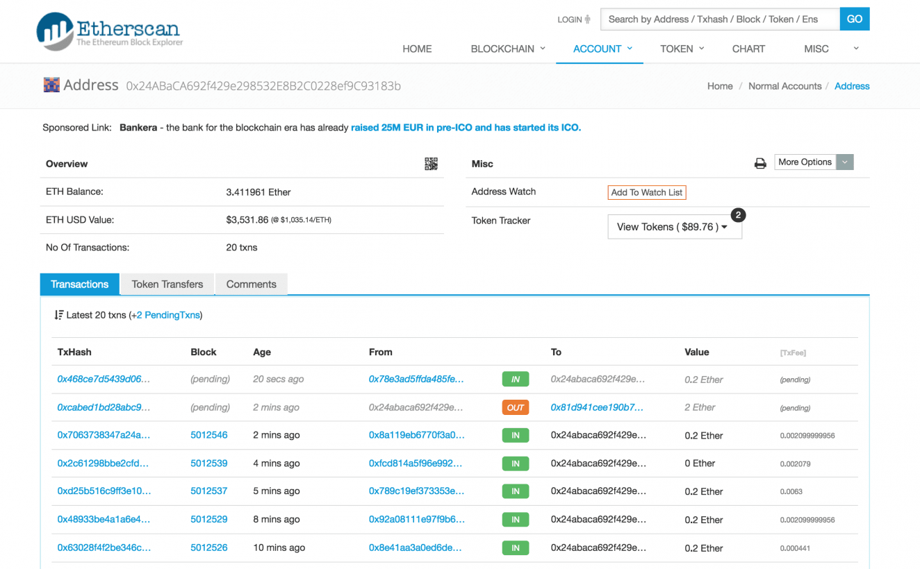 - جستجوی یک تراکنش انجام شده از هر کیف پول اتریوم.
