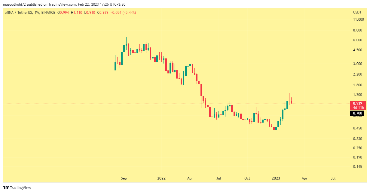 ارزدیجیتال MINA سال 2023 را مانند دیگر ارزهای دیجیتال بصورت طوفانی و صعودی شروع کرد. و در ژانویه توانست از قیمت 0.42 دلار صعود را آغاز کرده و با رشدی 200 درصدی خود را به قیمت 1.20 دلار برساند و یک کسب سود عالی را تقدیم به جامعه و طرفداران خود کرد.