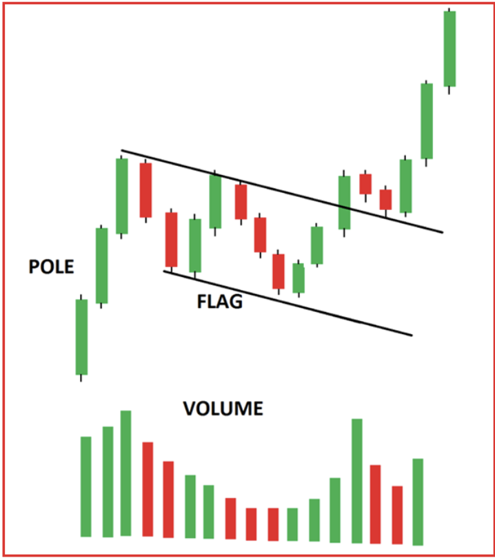 در همین حال، دوره شکلگیری پرچم نزولی با کاهش حجم معاملات همزمان است.